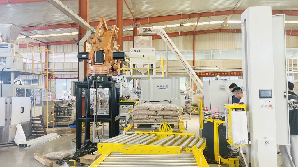 Buradasınız: Ev » Haberler » 15KG Ahşap pelet tartımı dolum torbalama Paletleme hattı teslimata hazır