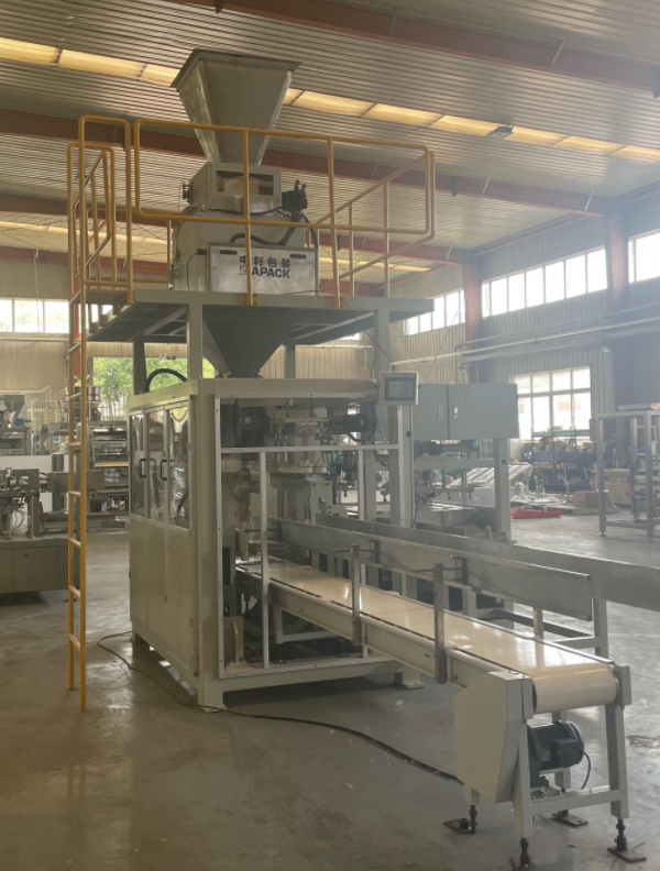 Bu makine, taneli malzemenin büyük dokuma torbalarda veya kraft kağıt torbalarda veya PE film torbalarda paketlenmesi için uygundur ve paketleme ağırlık aralığı 25kg~30kg'dır.