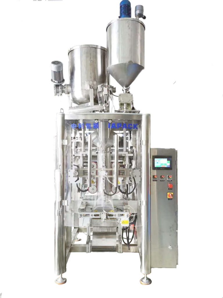 Bu ünite, akışkan ve viskoz ürünlerin ihtiyaçları için geliştirilmiştir. Ünite enjeksiyon makinesi ve paketleme makinesinden oluşmaktadır; paketleme makinesi basit bir yapıya sahiptir ve kullanımı kolaydır; makine, torba yapma, doldurma, mühürleme ve sayma işlevlerini entegre eder. Filmi çekmek için bir servo motor kullanır ve otomatik sapma düzeltme işlevine sahiptir.