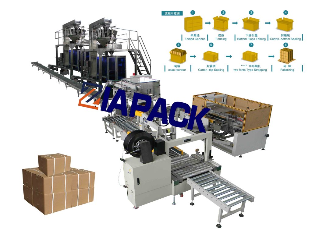 - Paketleme hattı üretim hattını oluşturmak için film paketleme makinesi, kutu dolumu ve paketleme makinesi ile çalışabilir.
