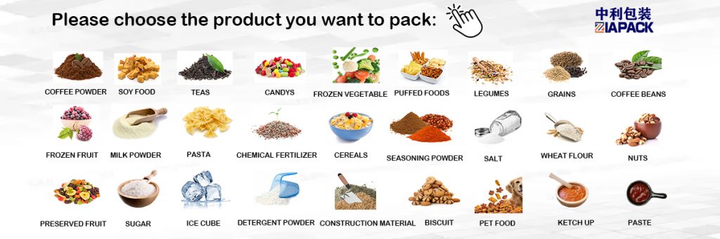 Aperatif, peynir, makarna, şekerleme, evcil hayvan gıdaları, IQF dondurulmuş gıdalar gibi granül, yığın, pul ürünleri için uygundur.