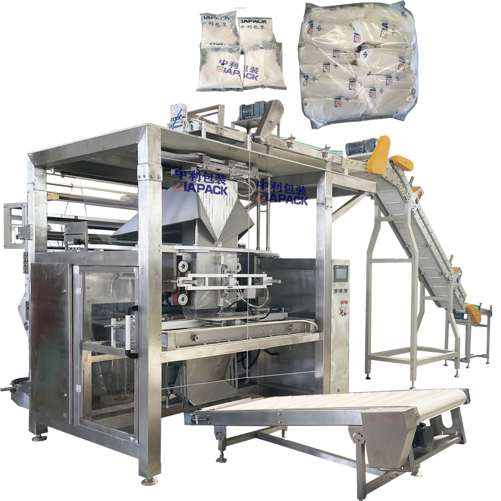 Bu makine, küçük torbayı büyük torbaya paketlemeye uygundur. Makine, torbayı otomatik olarak yapabilir ve küçük torbayı doldurabilir ve ardından büyük torbayı kapatabilir. Aşağıdaki birimleri içeren bu makine: